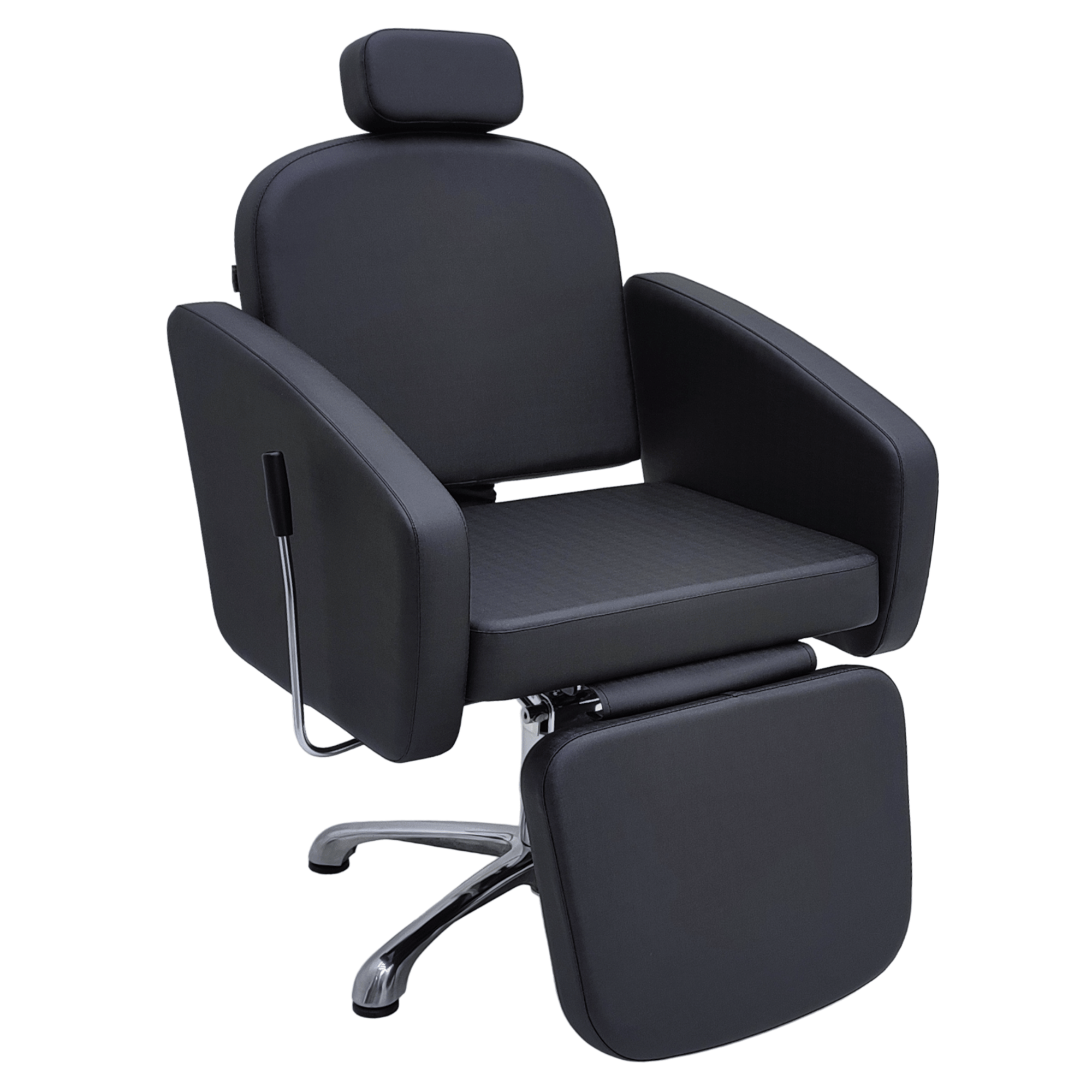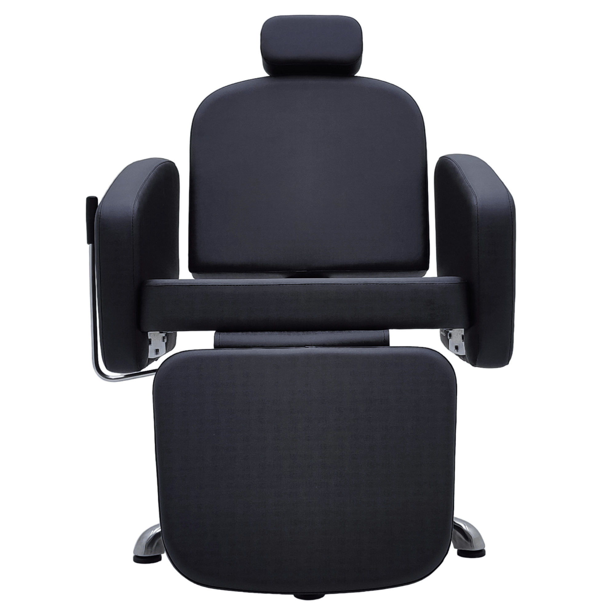 REF.: AP41 – RECLINÁVEL Assento e encosto em espuma laminada D33. Reclino simultâneo do encosto e descanso de pernas. Reclina até: 33° Pistão hidráulico em aço cromado. Base pentapé alumínio polido.